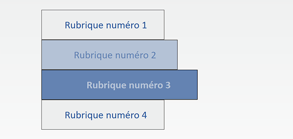 Sur l'exemple illustré par la capture, au survol de la souris sur une rubrique, cette dernière change d'aspect et s'élargit pour apparaître en évidence. Et cette