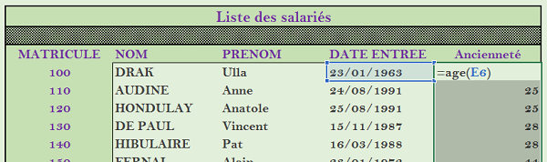 A la suite, dans la feuille de code du complément, créer la fonction Age() ,