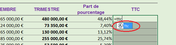 Sélectionner la fonction Ttc dont le nom est précédé de Personal.xlsb! ,