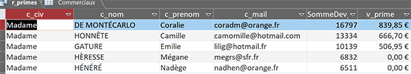 - Dans le volet de navigation, double cliquer sur la requête r_primes,