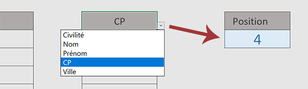 Comme vous pouvez le voir, un changement de valeur dans la liste déroulante induit un changement de numéro dans une cellule voisine, plus précisément en