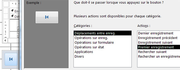 - De la même façon, créer les boutons pour revenir à l'enregistrement précédent, passer au suivant, se rendre au dernier et créer un nouvel enregistrement,